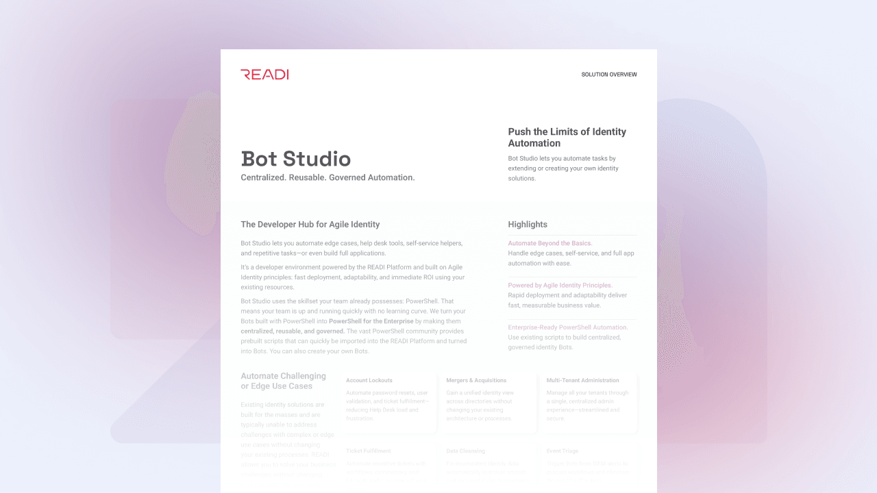 Bot Studio lets you automate tasks by extending or creating your own identity solutions.